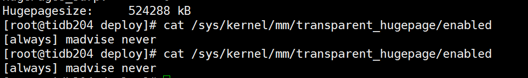 cat /sys/kernel/mm/transparent_hugepage/enabled