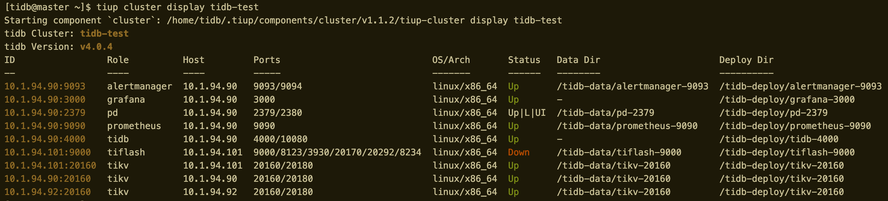 - scale-in --force -N 10.1.94.104:9090 ,先缩容 tiflash 节点。