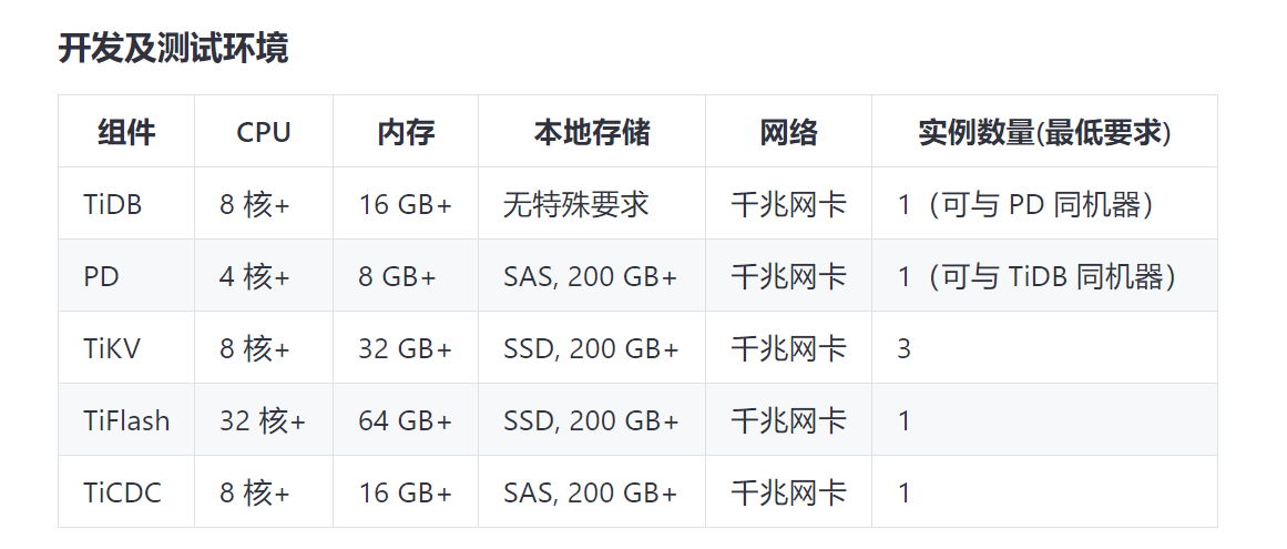 。TiDB对于资源环境的配置要求是不是还比较苛刻?目前手边也没有满足条件的环境。那想请问下您,如果按照给出的测试环境的配置要求进行批量的数据导入的话大概理论的数据写入速度每秒能达到多少条记录?批量导入的另外TiFlash与tikv两种不同方法进行olap的话数据量达到多少以上差距会比较明显?从原有的Oracle数据库批量导入数据到TiDB有什么比较高效的方式?目前是使用的Kettle来做的etl。