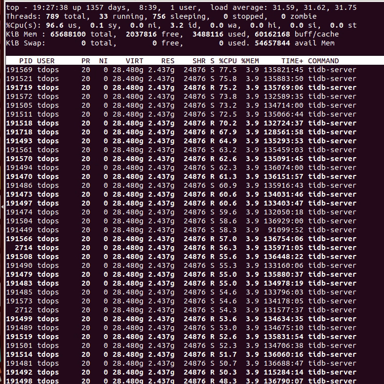 tidb-server: 32C * 64G * 5