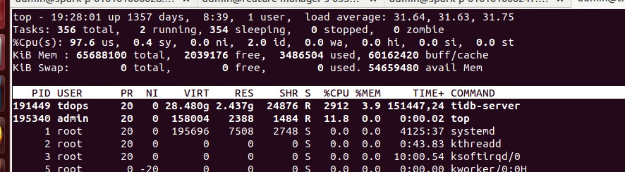 tidb-kv: 32C * 128G * 8