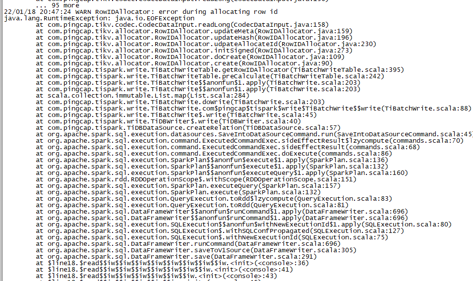 使用 tispark 导入数据到 tidb,报错:
