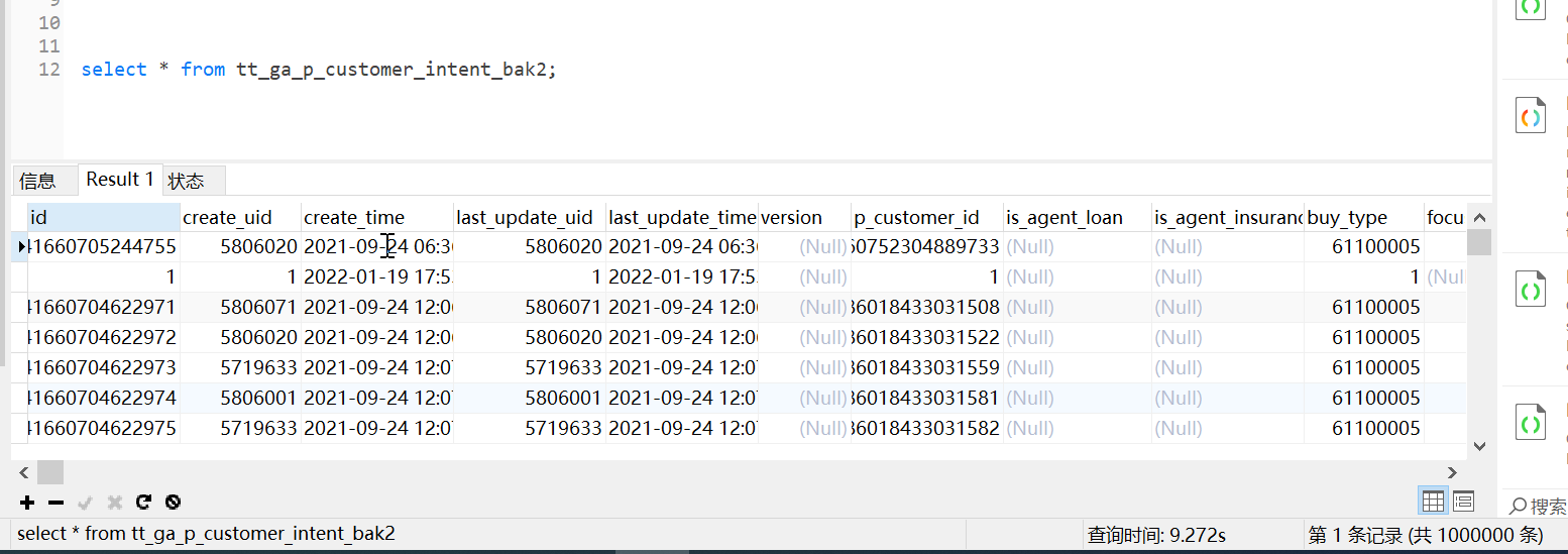这是tt_ga_p_customer_intent_bak2查询消耗花了9s