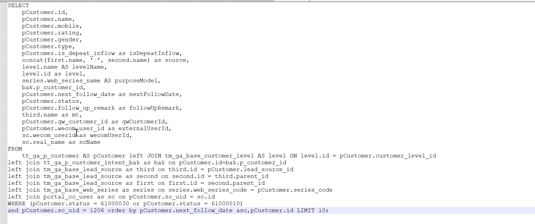 and pCustomer.sc_uid = 1206