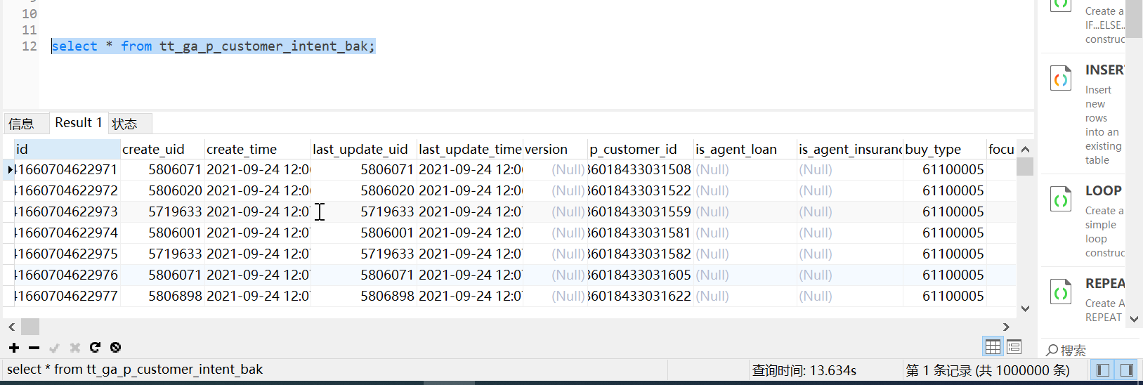 这是tt_ga_p_customer_intent_bak查询消耗花了13s