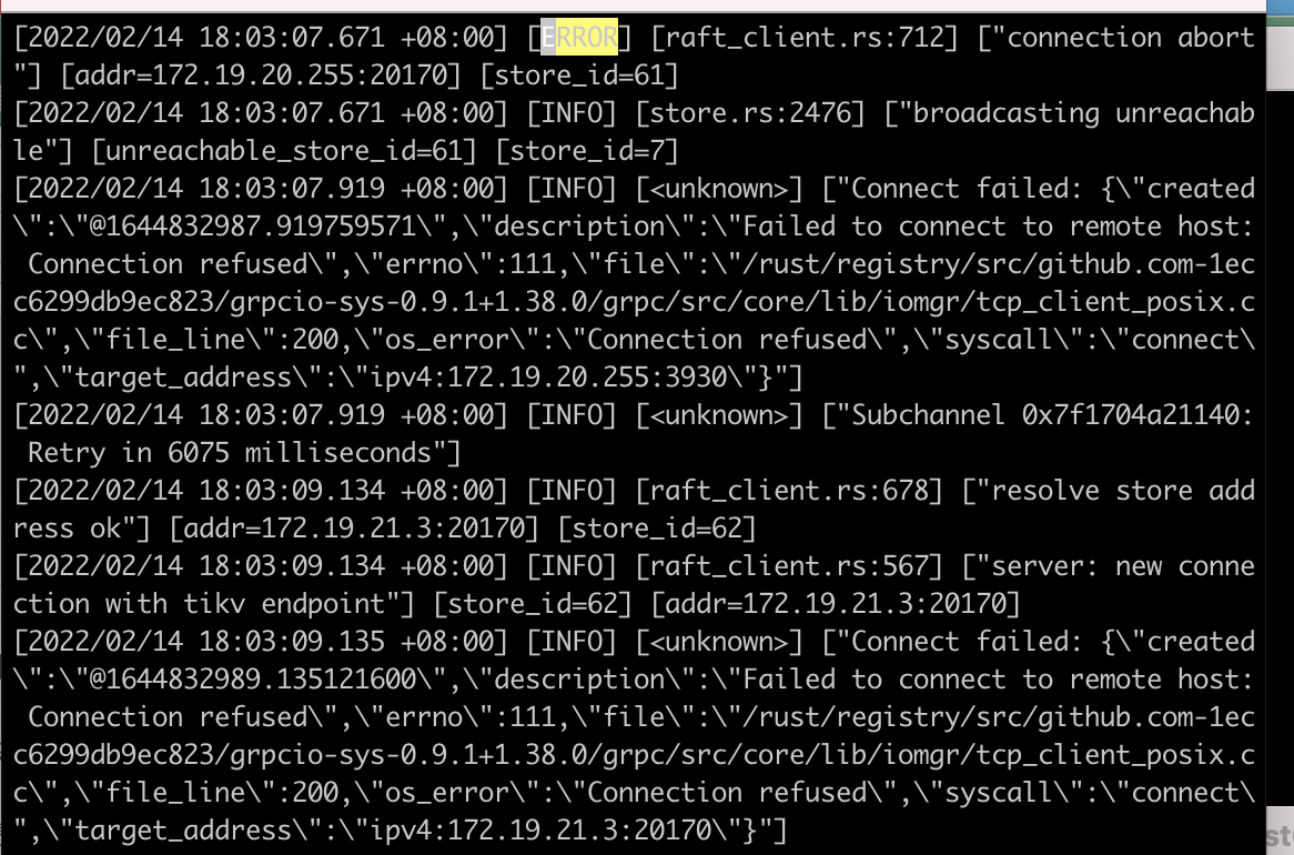 tikv中报了很多连接不上Tiflash的日志,但看了下端口应该没问题的