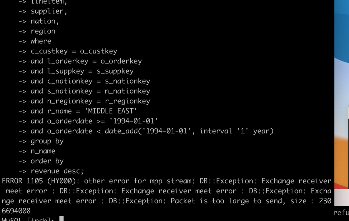 正在测试tpch性能,测q5时出现错误 [9012] [HY000]: TiFlash server timeout,tiflash报错timeout