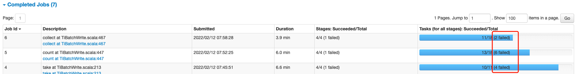 出现如下的失败任务重试: