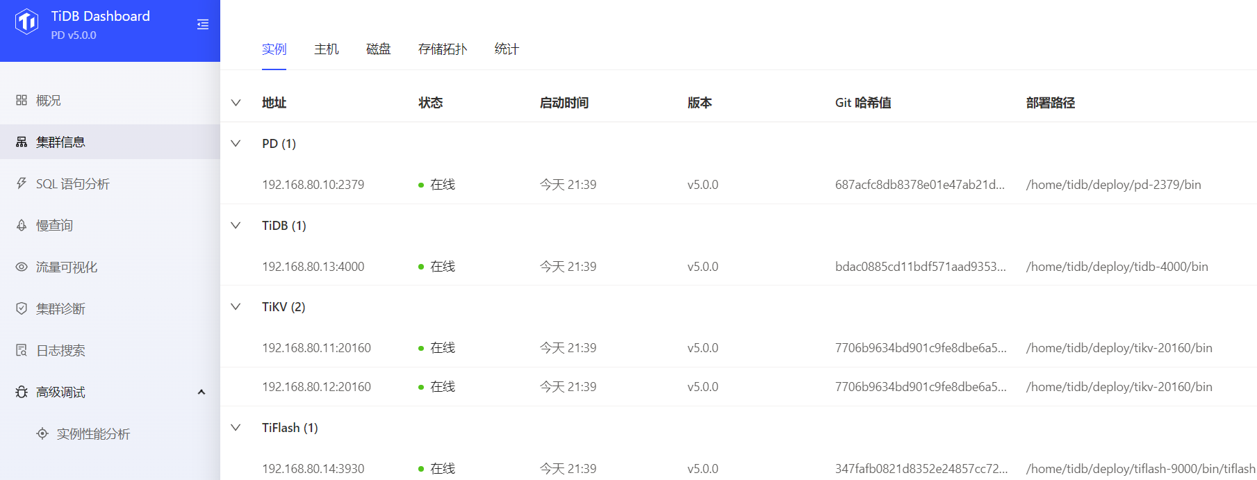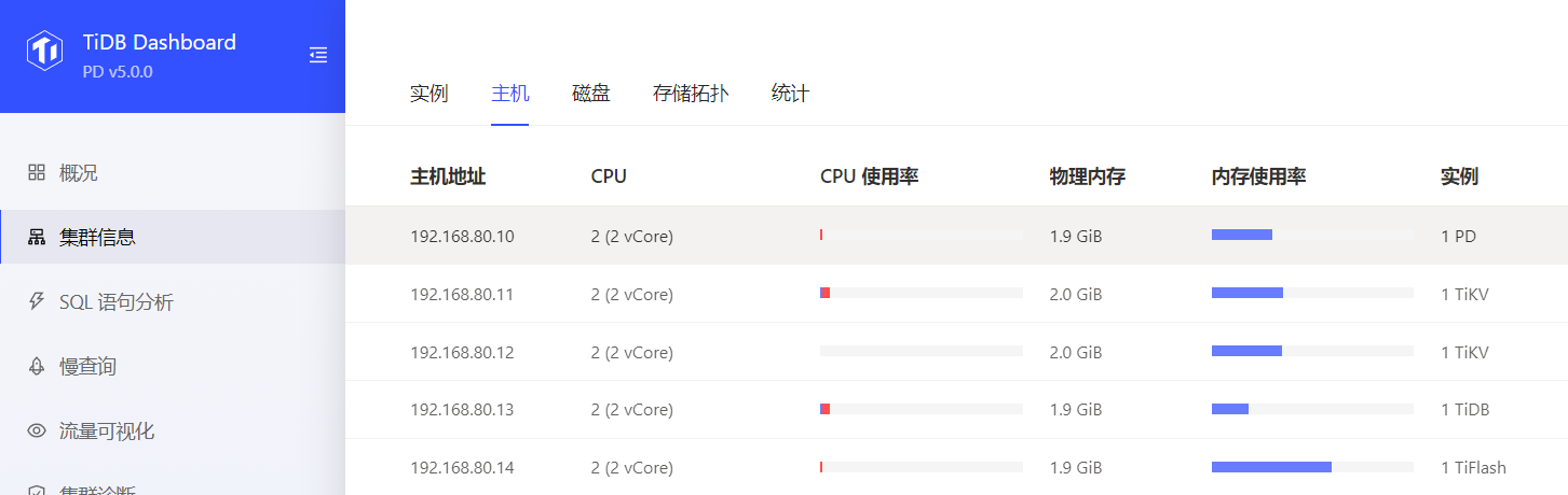 | TiDB server | 192.168.80.13:4000 | 1 |