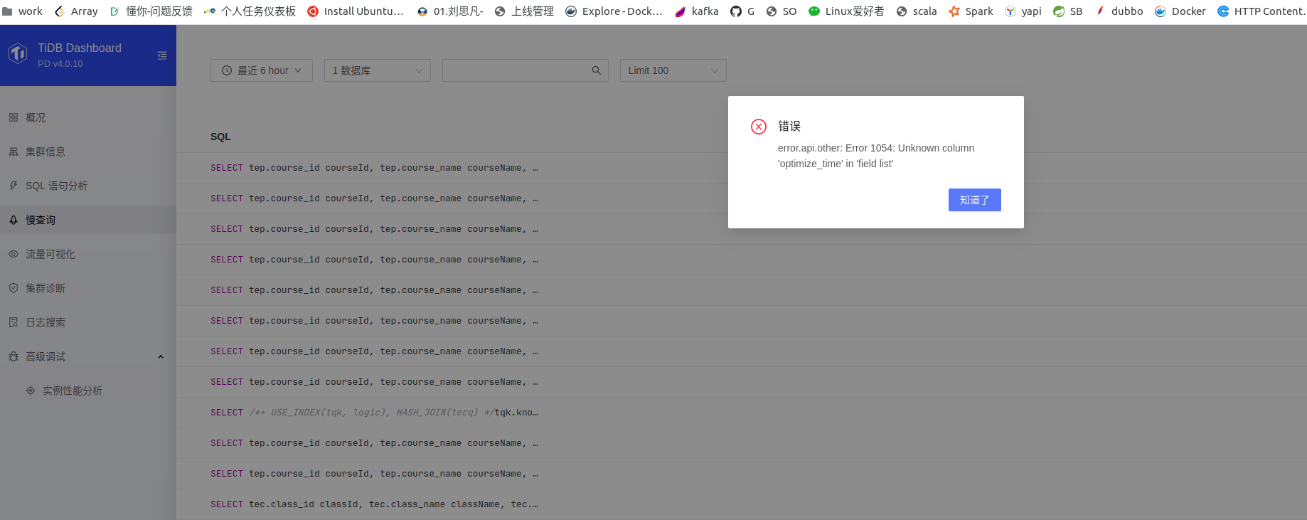 如果导出失败,建议直接用sql语句查询,这个页面是从INFORMATION_SCHEMA.CLUSTER_SLOW_QUERY中查询的