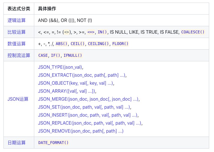 https://docs.pingcap.com/zh/tidb/stable/expressions-pushed-down#下推到-tikv-的表达式列表