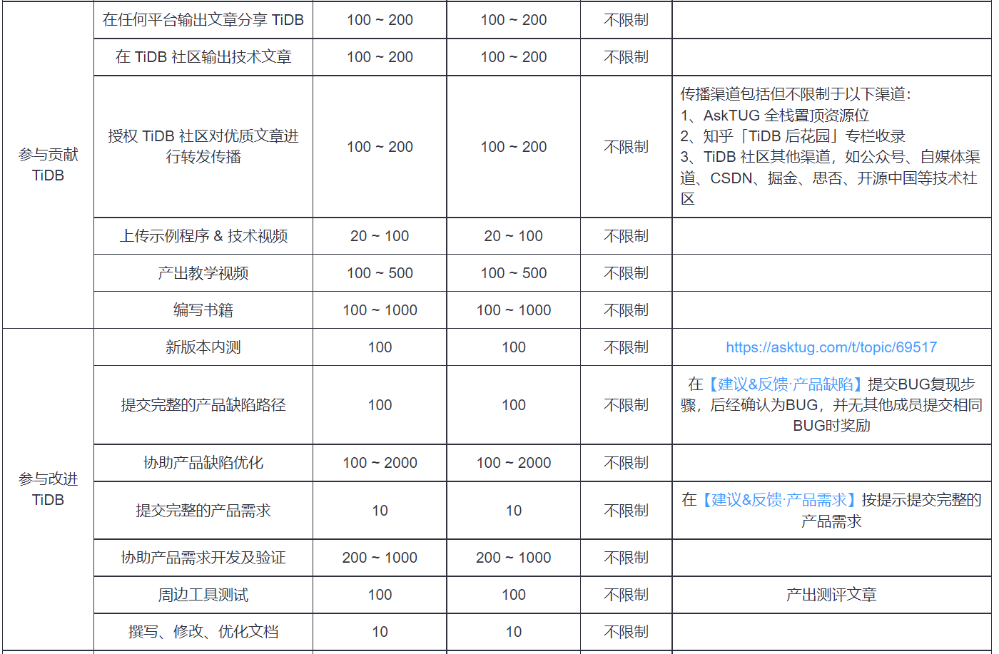 为感谢你对 TiEM 免费试用计划的积极参与,我们将根据 TiDB 社区积分奖励原则,通过奖励积分回馈大家对 TiEM 的贡献,最高可获得2000积分。