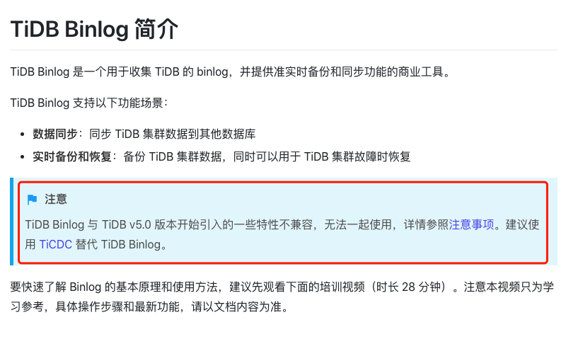 4.x 可以用binlog,binlog 主要从tidb 节点生成,需要额外的资源去完成事务的收集和分发