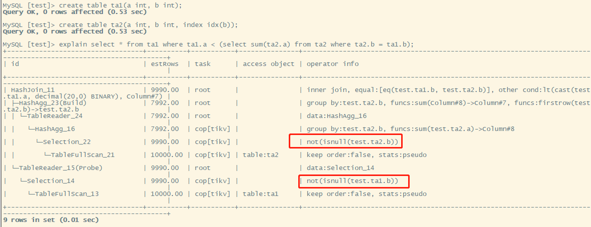 是没有加约束, 感觉执行计划 对 ta2.b = ta1.b 类似 的 列都进行 not(isnull( 操作