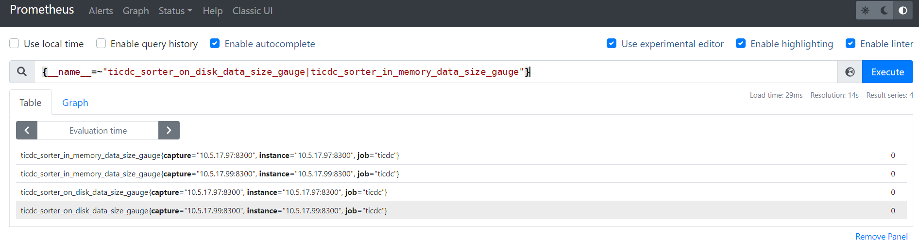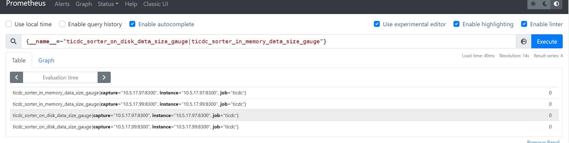 ticdc_sorter_on_disk_data_size_gauge{capture="10.5.17.97:8300"} 0
