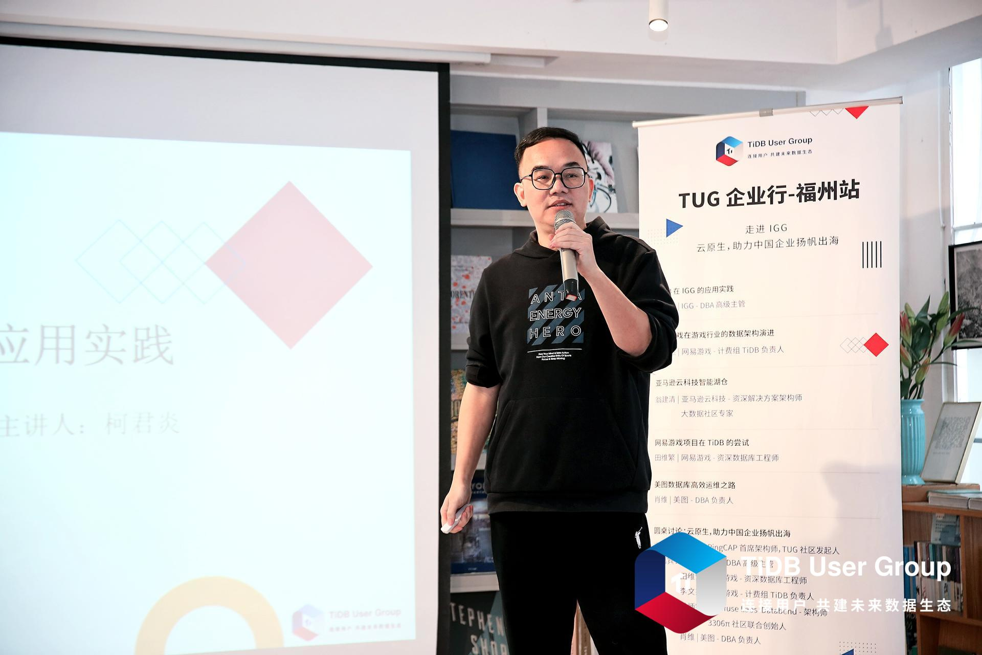 IGG 作为本次活动的联合主办方,来自 IGG 的 DBA 高级主管柯君炎老师为大家分享了 TiDB 在 IGG 的应用实践 ,分享了有关 IGG 在分布式数据库的选型以及 TiDB 在 IGG 的落地使用。