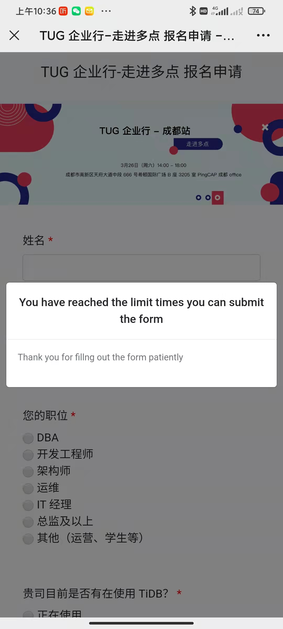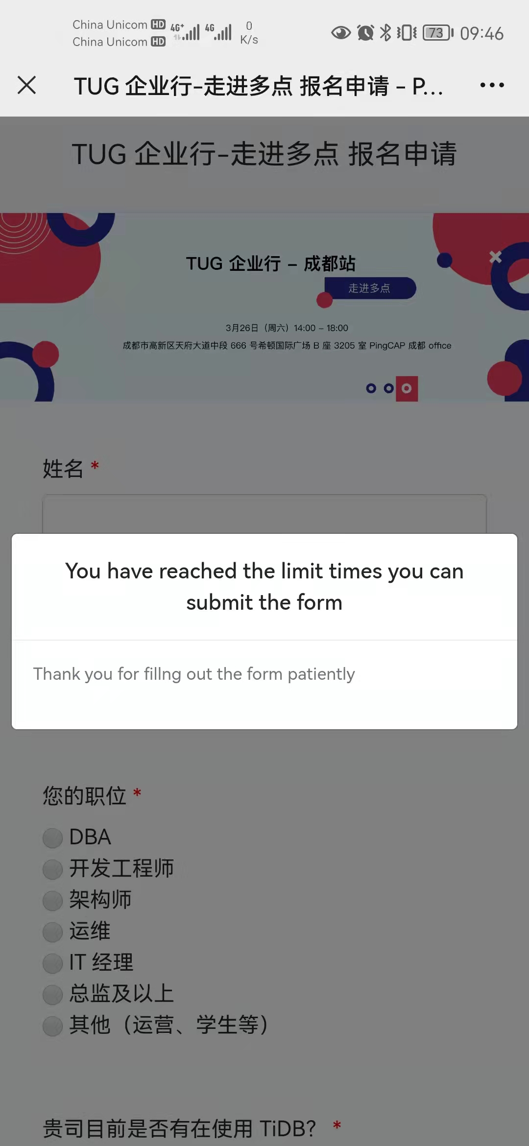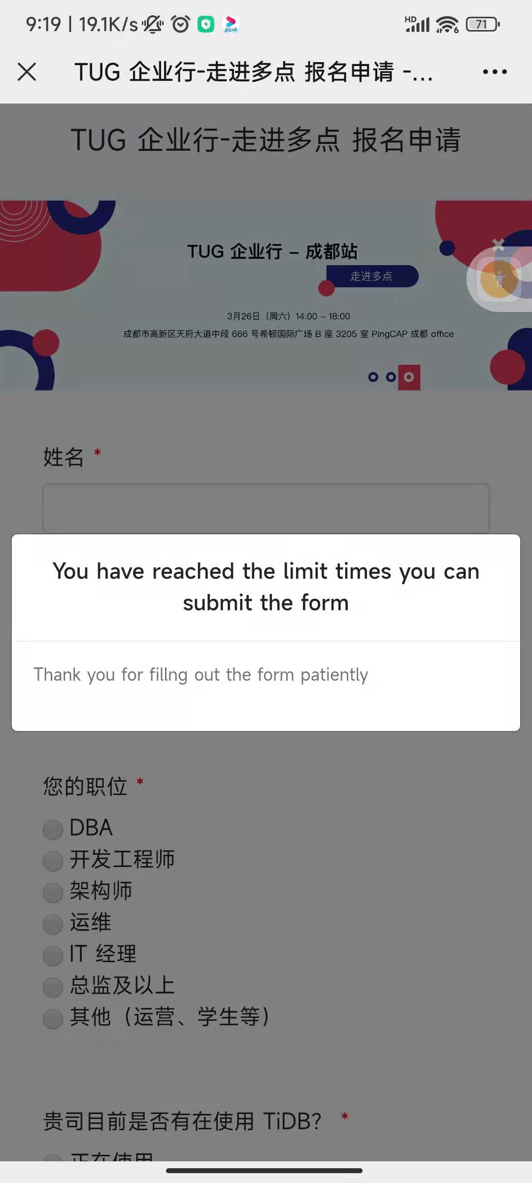 活动地点:成都市高新区天府大道中段 666 号希顿国际广场 B 座 3205 室 PingCAP 成都 office