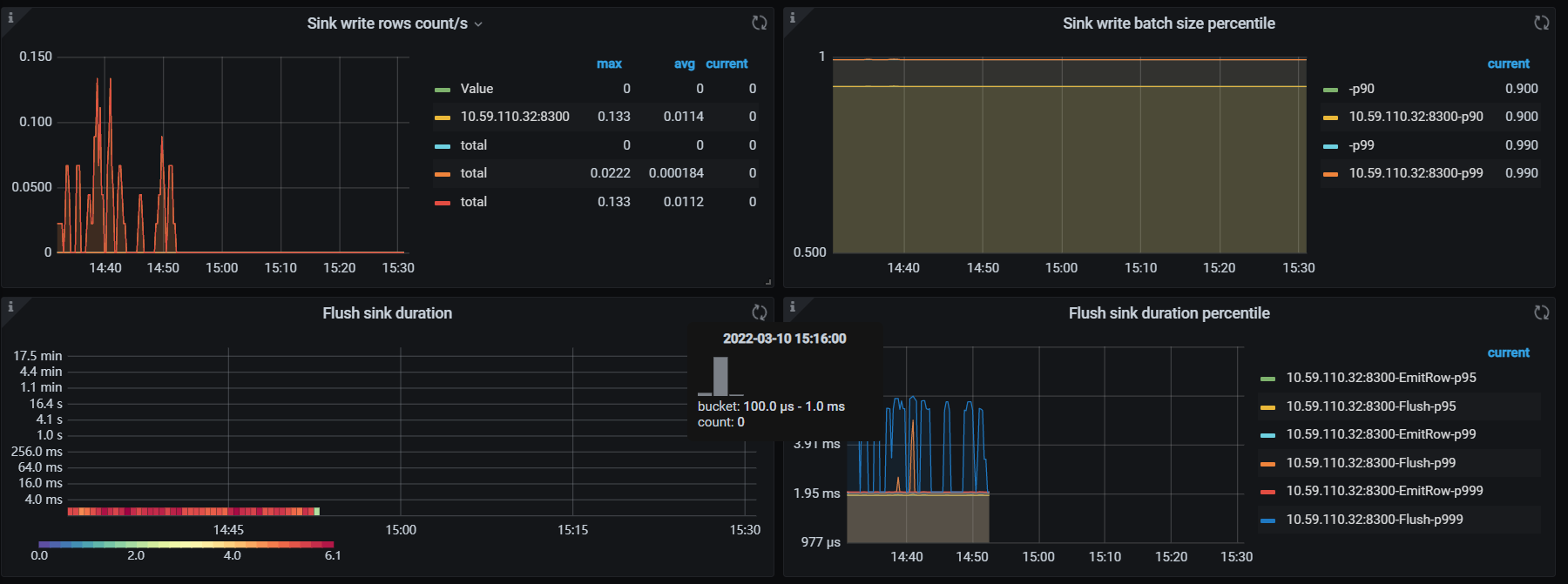 2022/03/10 14:09:18.435 +08:00] [INFO] [statistics.go:154] ["sink replication status"] [name=MQ] [changefeed=payment-task] [capture=10.59.110.32:8300] [count=0] [qps=0] [ddl=0]