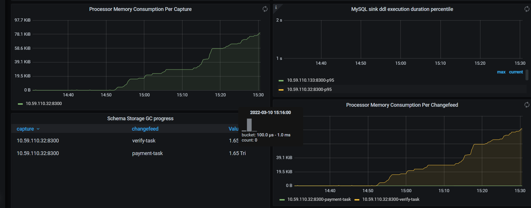[2022/03/10 14:49:20.436 +08:00] [INFO] [statistics.go:154] ["sink replication status"] [name=MQ] [changefeed=payment-task] [capture=10.59.110.32:8300] [count=0] [qps=0] [ddl=0]