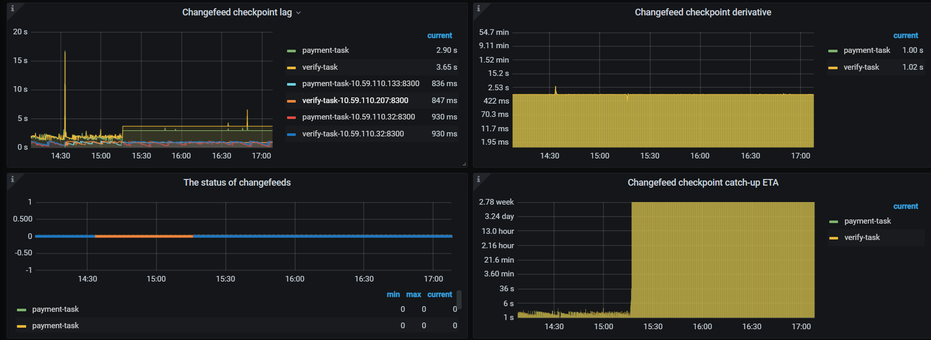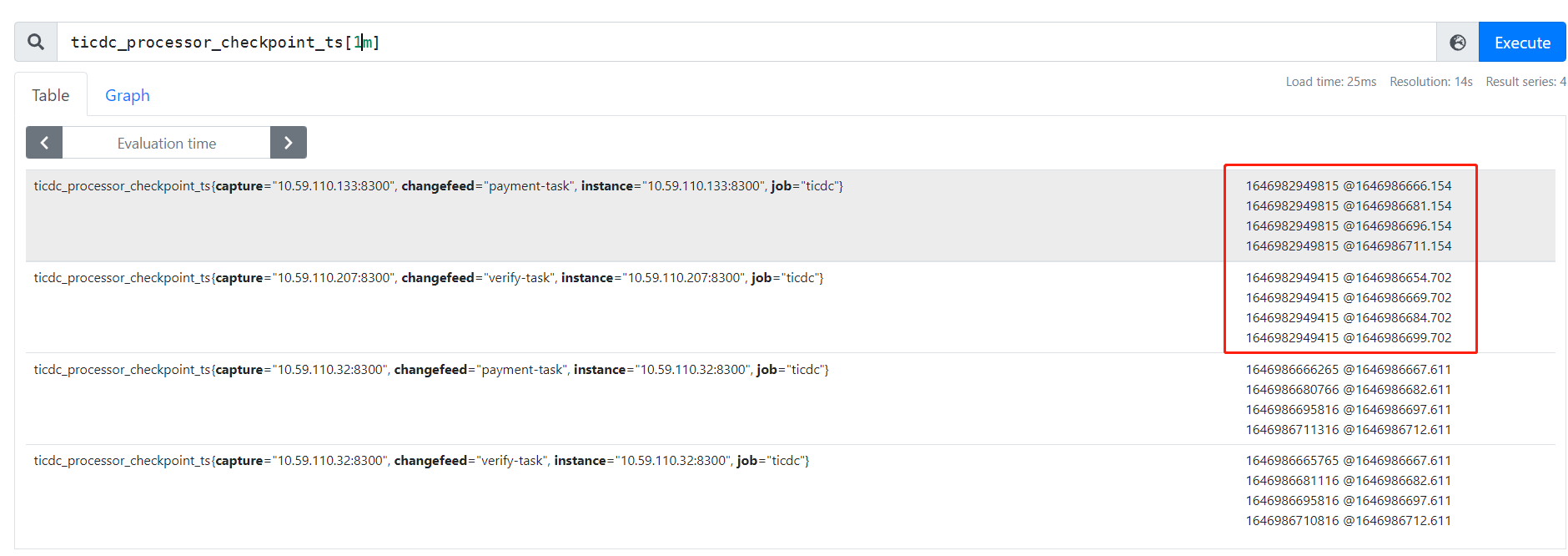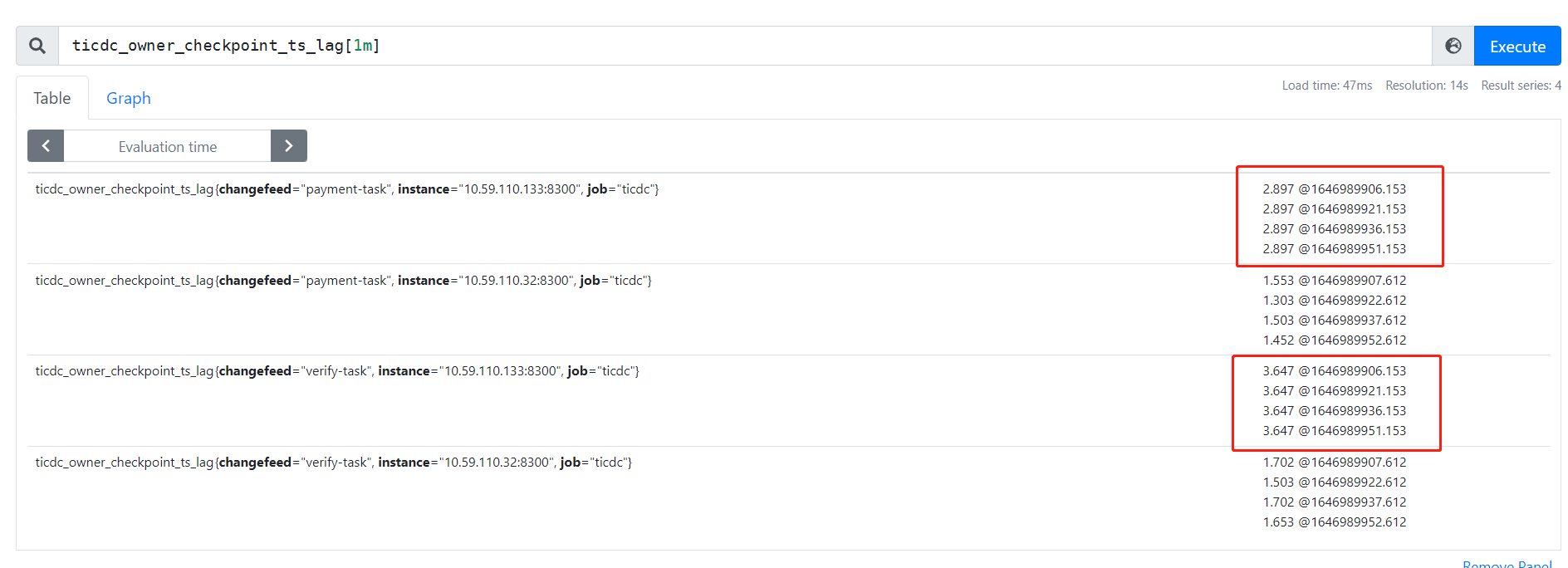 看上面这张图,133在一分钟之内lag都不变,怀疑是changefeed task切换到32上面,原来旧的processor没有清理对应的信息