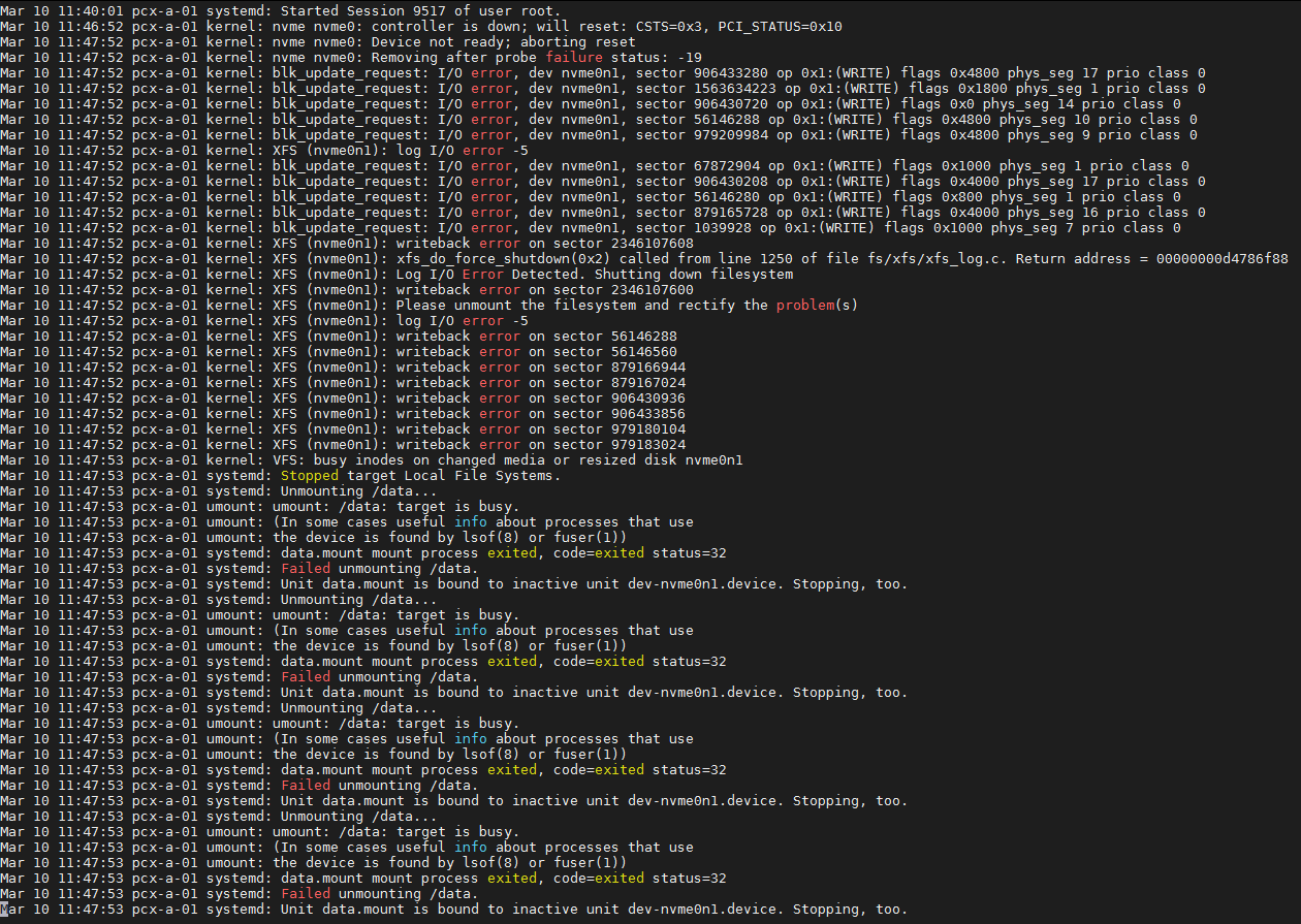 这么神奇呢? tidb的所有操作都已raft log形式写入,所以对磁盘性能有要求,但是你的nvme 性能应该没问题, 主机和磁盘的品牌是什么? 你的系统日志已经显示nvme controller down,压测期间的磁盘性能监控发下看看
