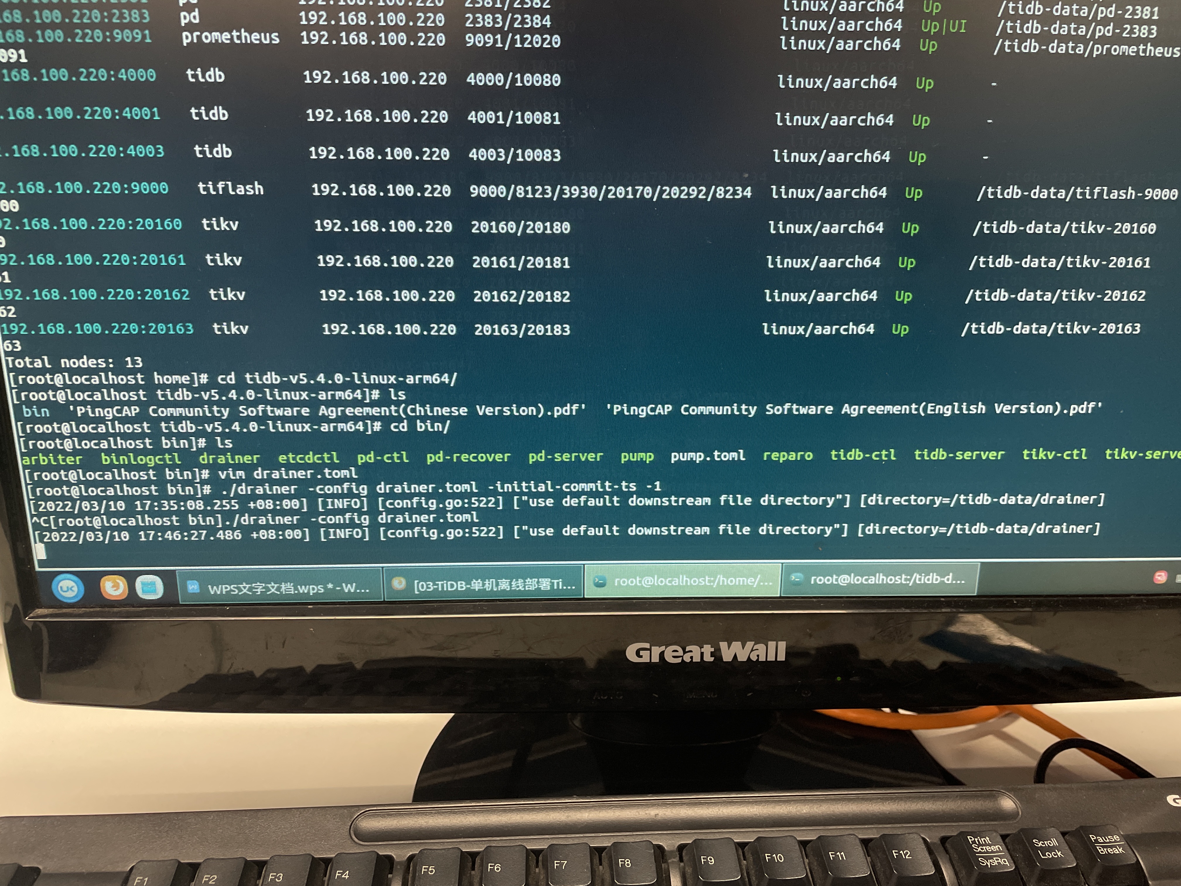 tiup cluster display 集群名 看看drianer节点的状态是不是Up
