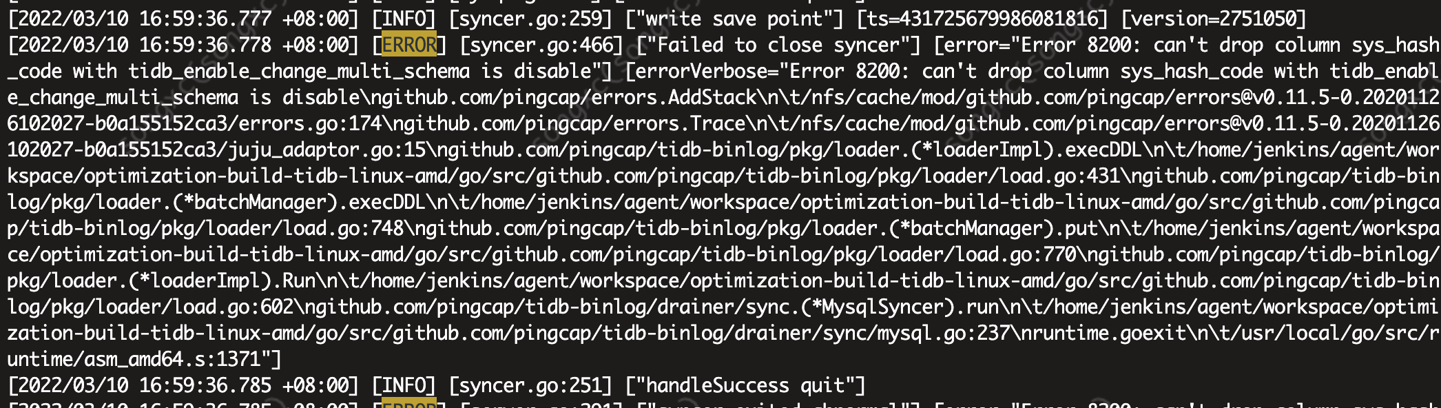 备集群修改参数为1后 重新启动drainer后没有问题
