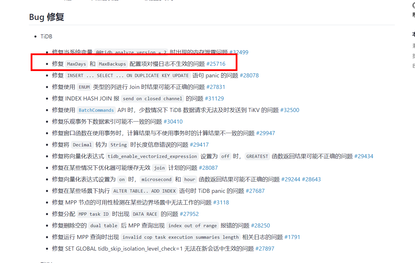 max-days对慢日志不会生效,可以写个crontab的定时任务按天分割慢日志,不过要注意别把原文件删除,否则只能重启tidb-server才能重新写慢日志,另外分割后就不能在 SLOW_QUERY表里查被分割的慢sql了。