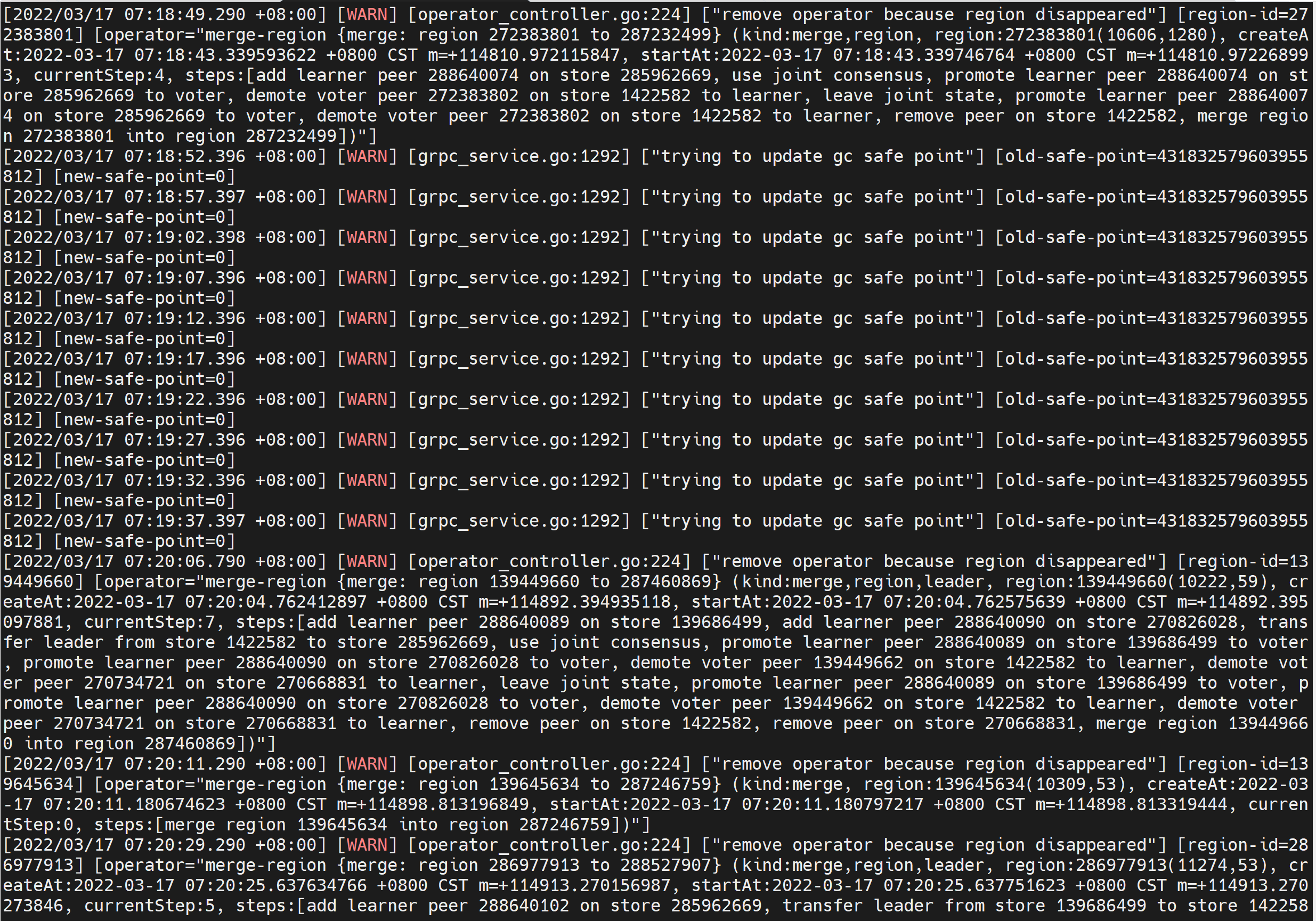 PD没有ERROR日志,只有PD leader上有一些WARN日志,其它的pd上连WARN日志也没有。