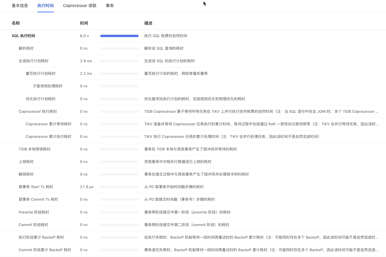 Insert_1 root 0 N/A 0 time:120.3µs, loops:1, prepare:38.5µs, insert:81.8µs, lock_keys: {time:5.8s, region:3, keys:9, lock_rpc:5.802377927s, rpc_count:3} 2.97 KB N/A