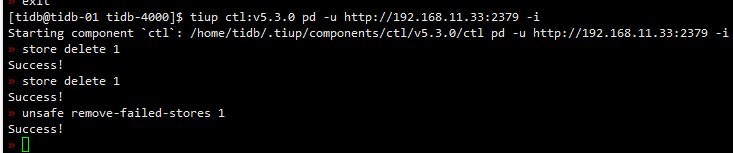 tiup cluster scale-in --force ktp-tidb-cluster --node 192.168.11.31:20160 -y
