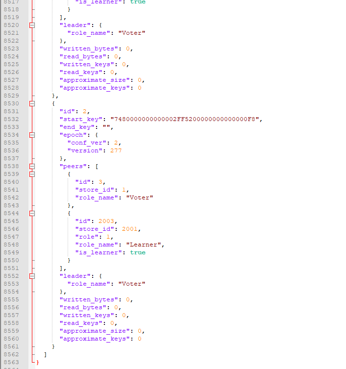 我用./pd-ctl region store 1 -u http://192.168.11.33:2379 >aa.json得到文件,里面我有点看不到
