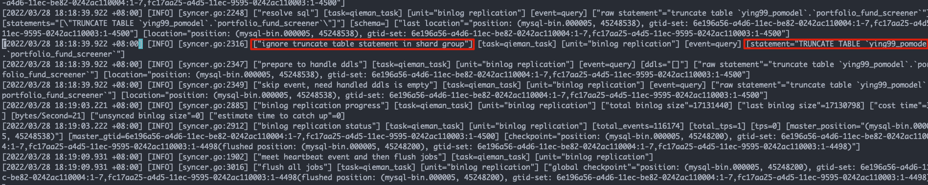 如图所示,TRUNCATE操作仍旧被过滤掉了