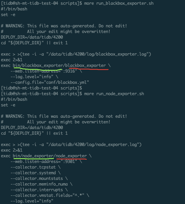 - 当前可以考虑从其他节点 copy 监控信息:/etc/systemd/system/ : blackbox_exporter xx.service 和 node_exporter-9100.service /home/tidb/deploy/ deploy 目录下 copy 所有目录过来. 对比修改下内容。