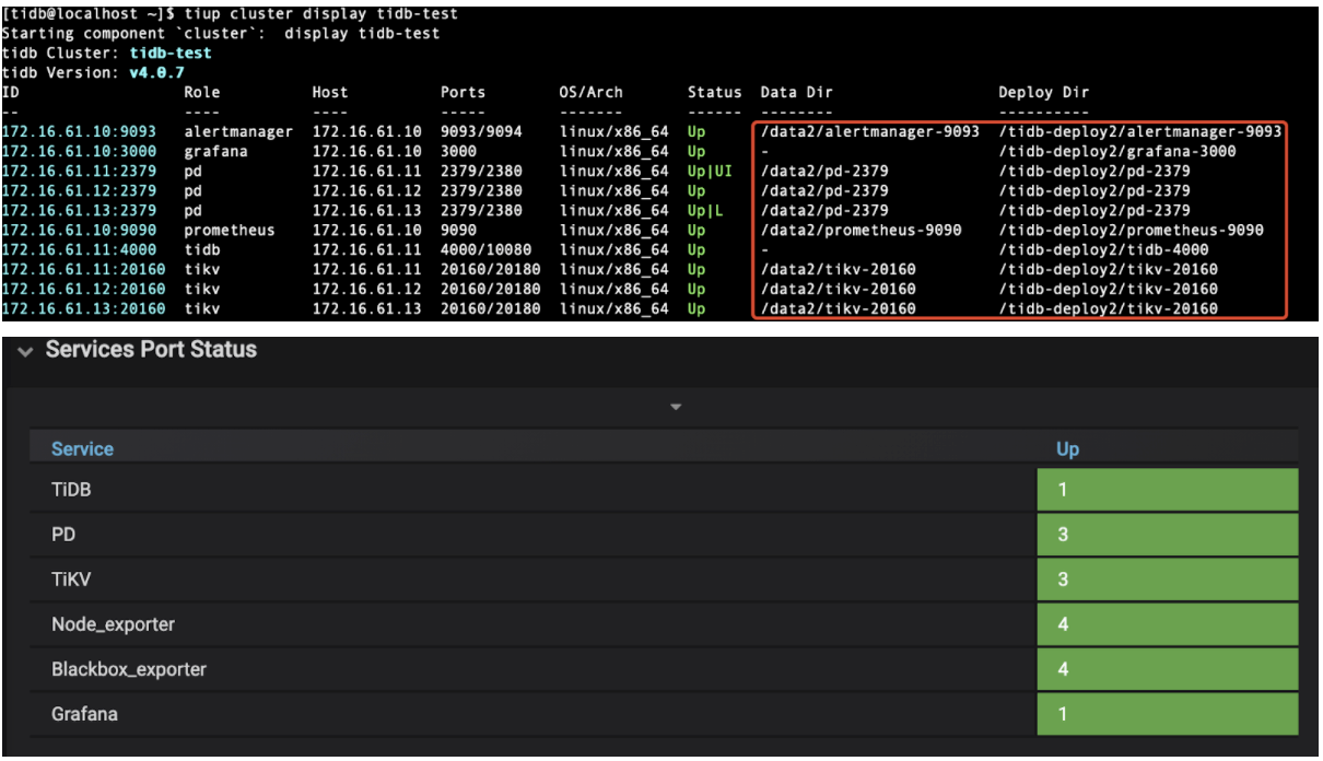 [tidb@localhost ~]$ cp -r /data1/* /data2/ [tidb@localhost ~]$ cp -r /tidb-deploy/* /tidb-deploy2提示: