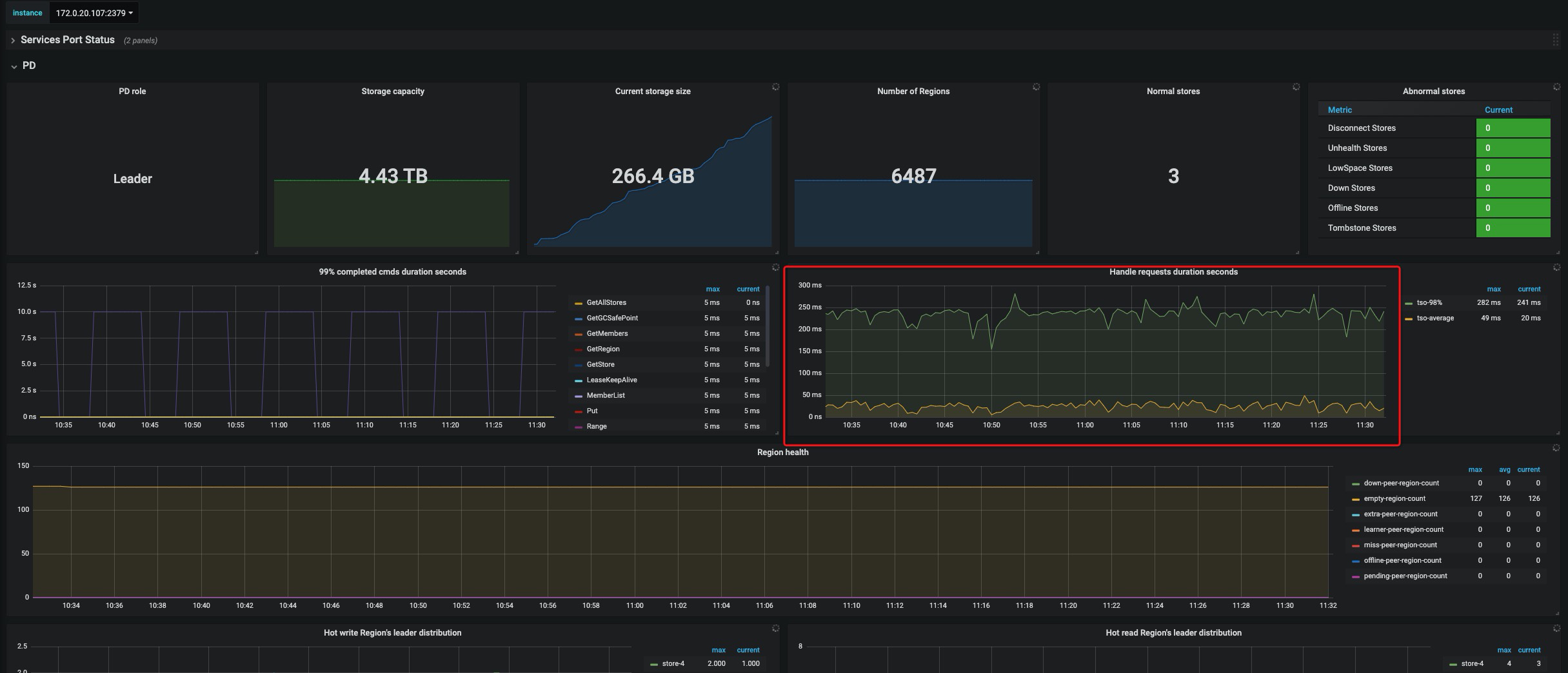 我们再次定位,不是两台高,是PD Leader所在节点流量高,ping延时非常大,