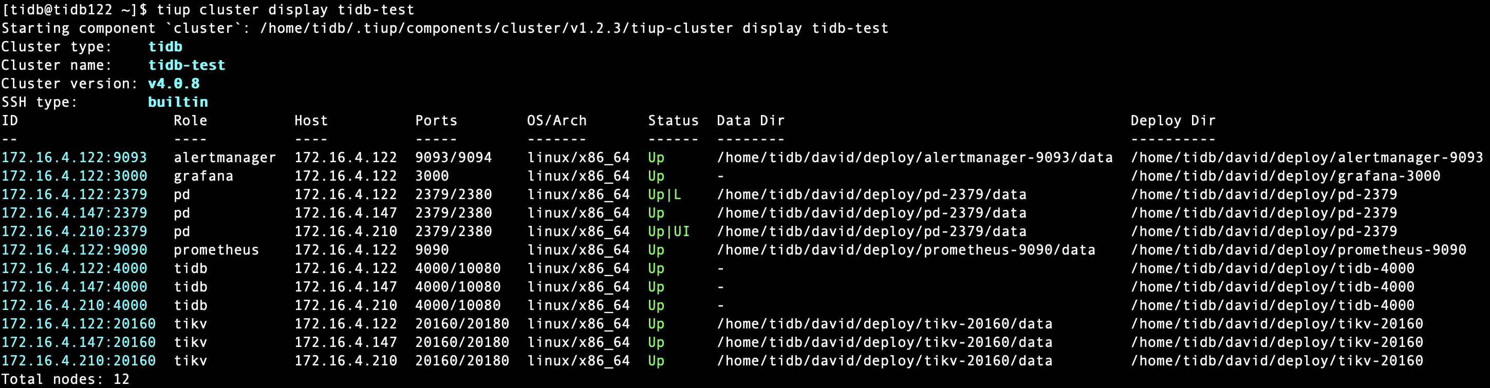 [tidb@tidb122 ~]$ tiup cluster reload tidb-test