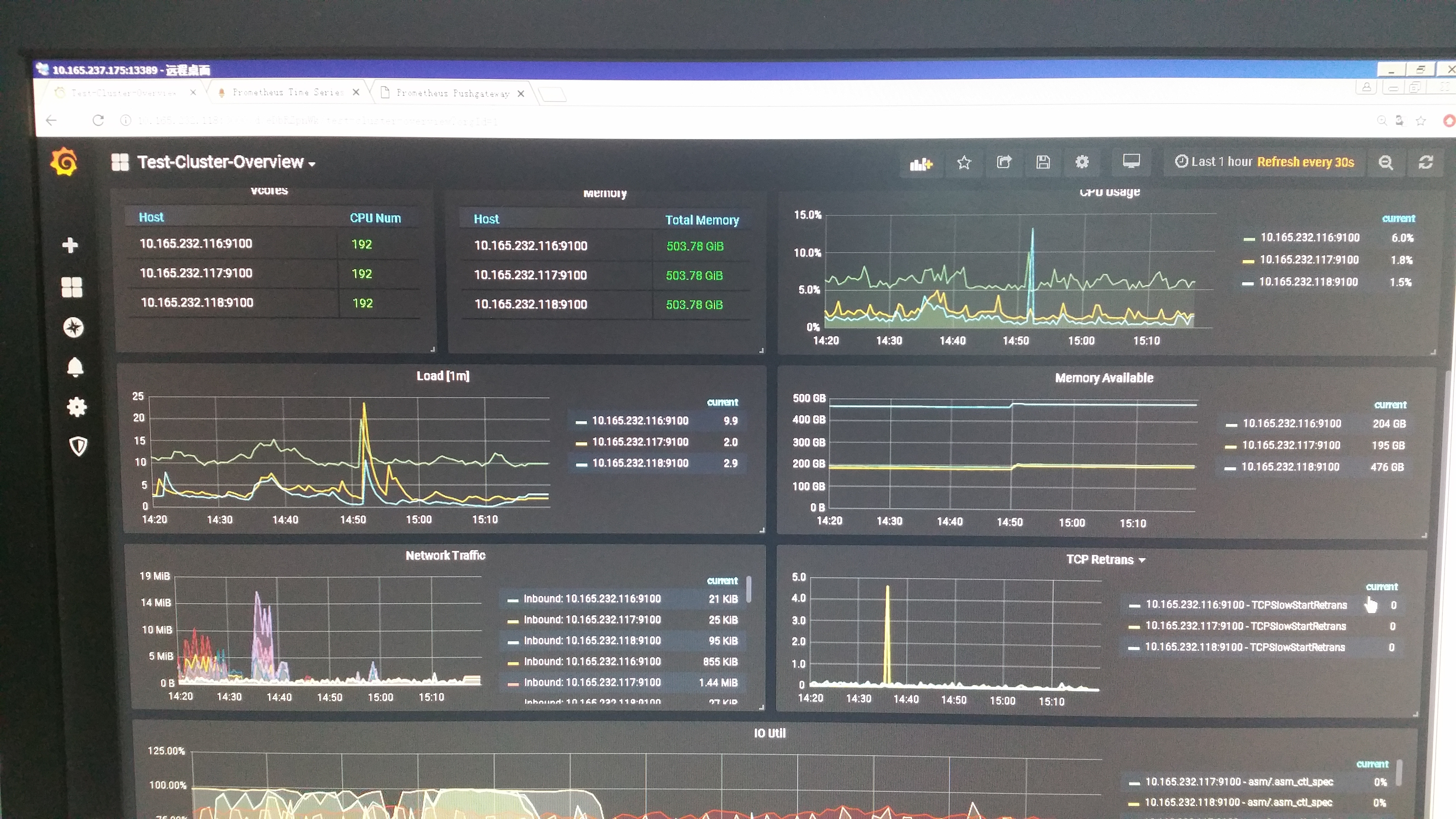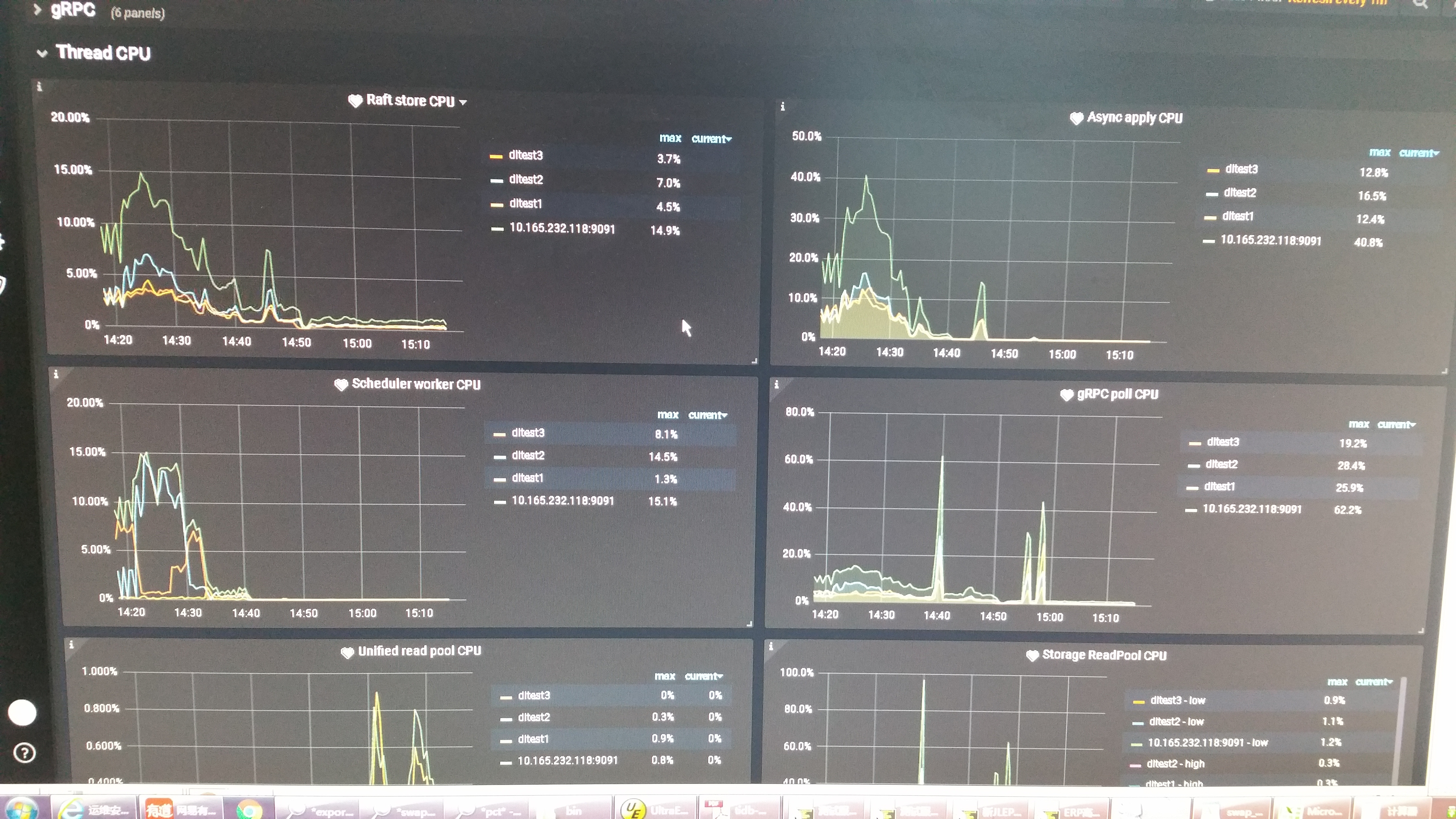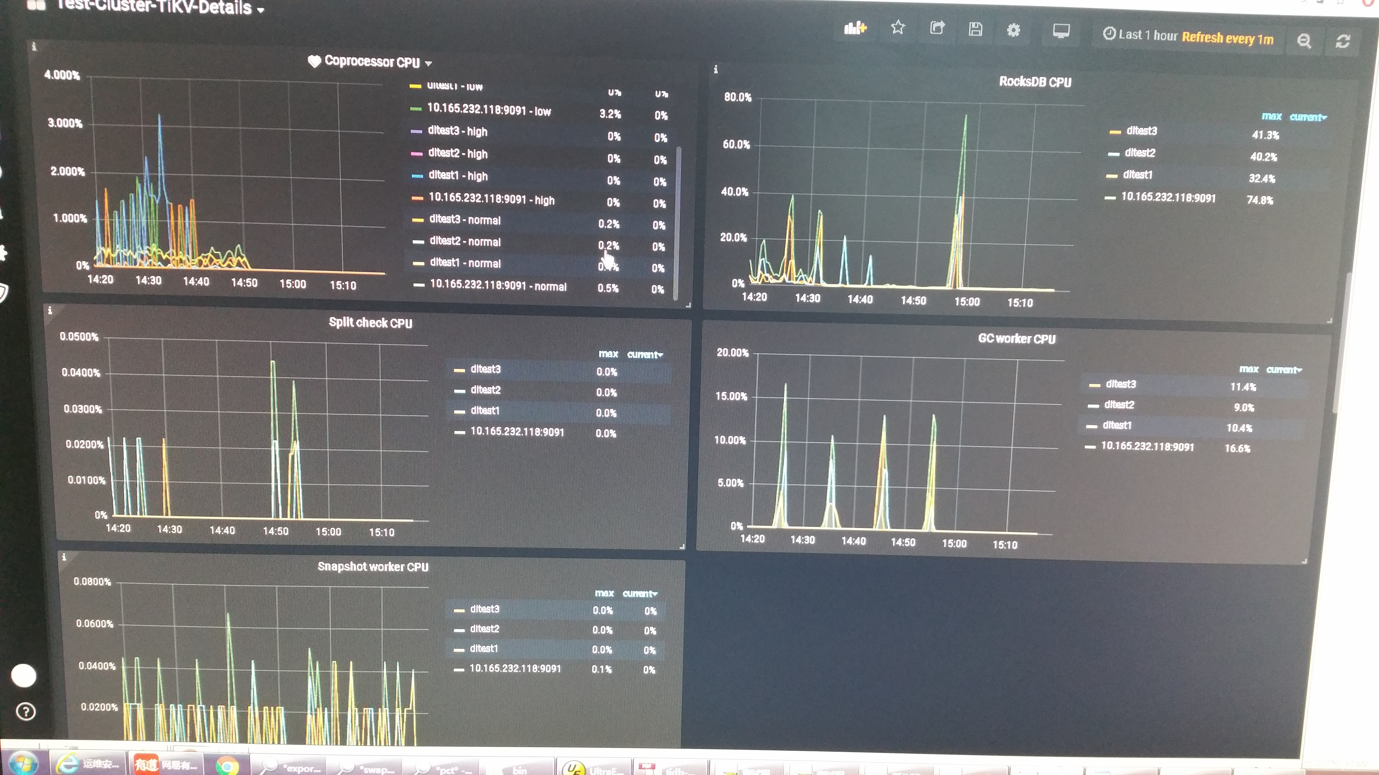 3、查看 overview 下面的 system info、tikv-detail 下的 thread CPU 使用情况,以及是否出现热点