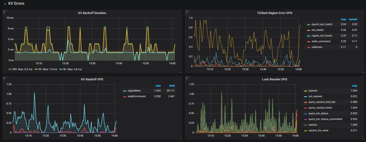 我们目前正在利用DM从线上RDS MySQL库同步到TiDB,接收同步请求的那个TiDB节点每隔几分钟就会出现关于tidb_tikvclient_backoff_seconds_count的报警,具体信息如下: