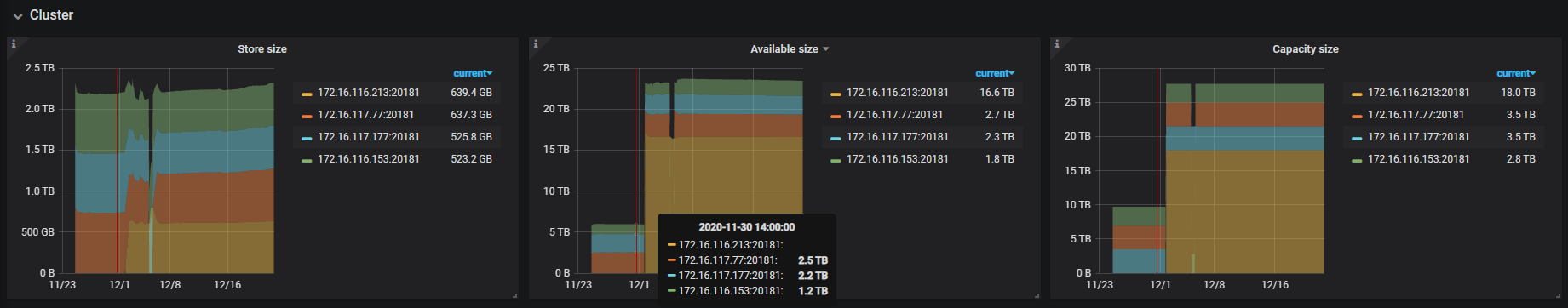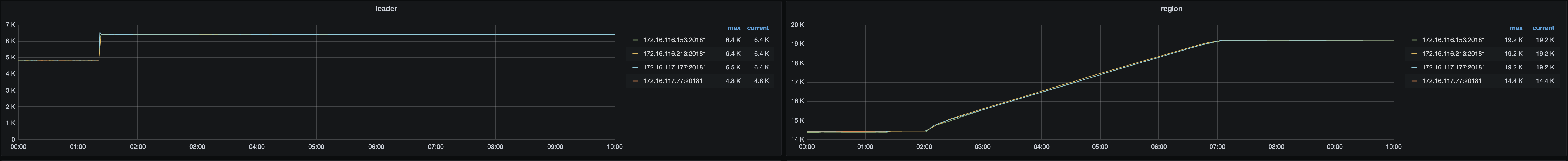 当时发现那台服务器关机之后,就在新服务器扩容了pd和tikv,两个操作间隔应该不长。