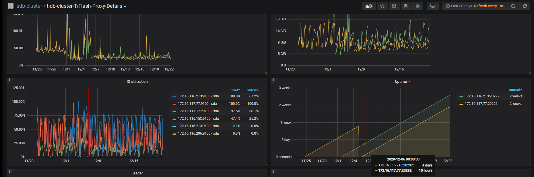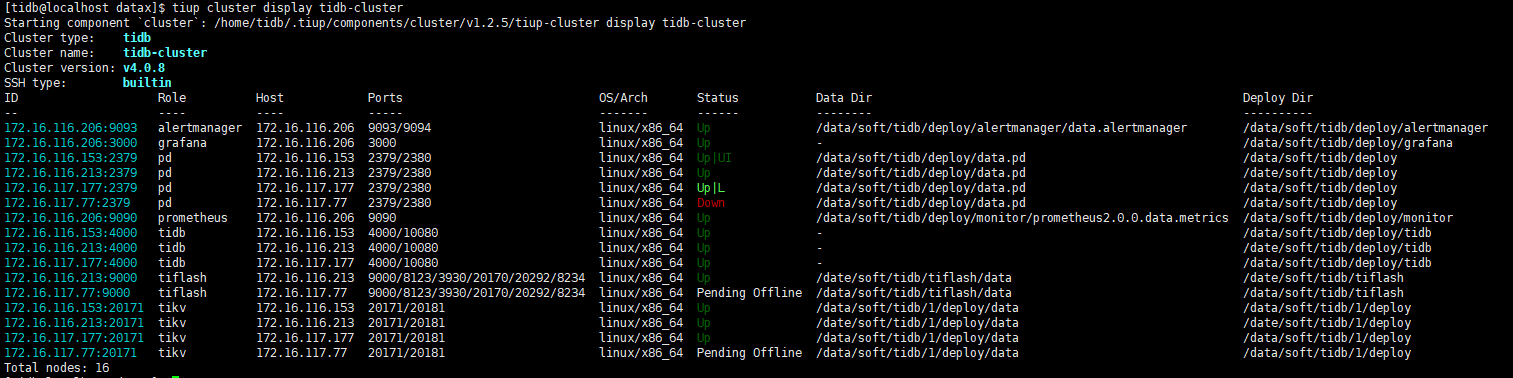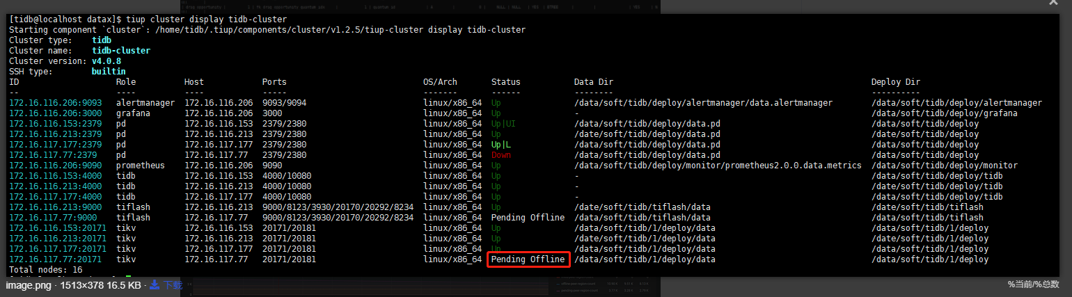 掉线那台机器上部署了tikv,pd,tiflash(单节点)