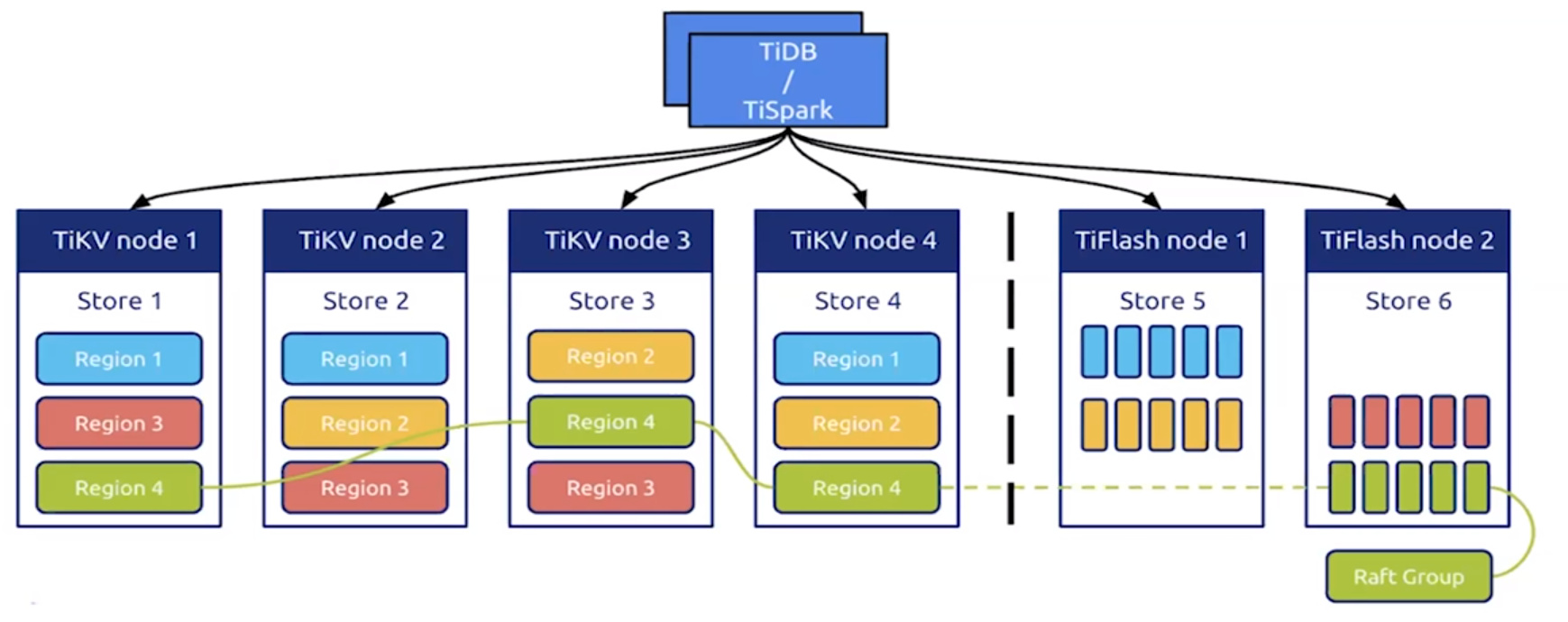 - 同时具备行存(TiKV)与列存(TiFlash)