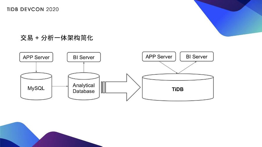 - 你有一台 HTAP 数据库,它其实是可以给用户降低架构的复杂度,也降低运维成本的,顺便会提升业务的实时性,以及提升业务的敏捷性。敏捷性就是说你要开启一个业务或者要新建一个业务所需要的开发周期和架构周期