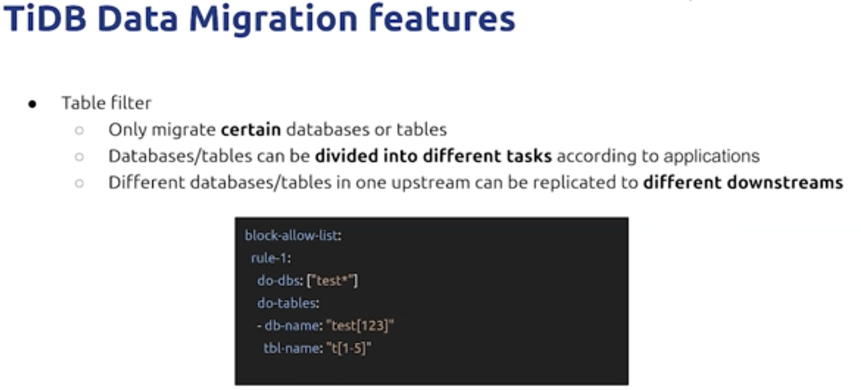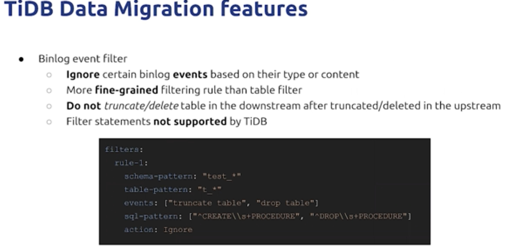 - 需要提供一个额外的schema文件,也可以在TiDB中先创建好数据表