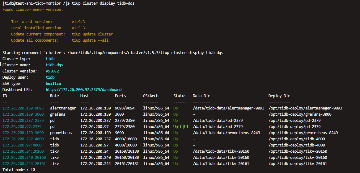 TiUP Cluster Display 信息