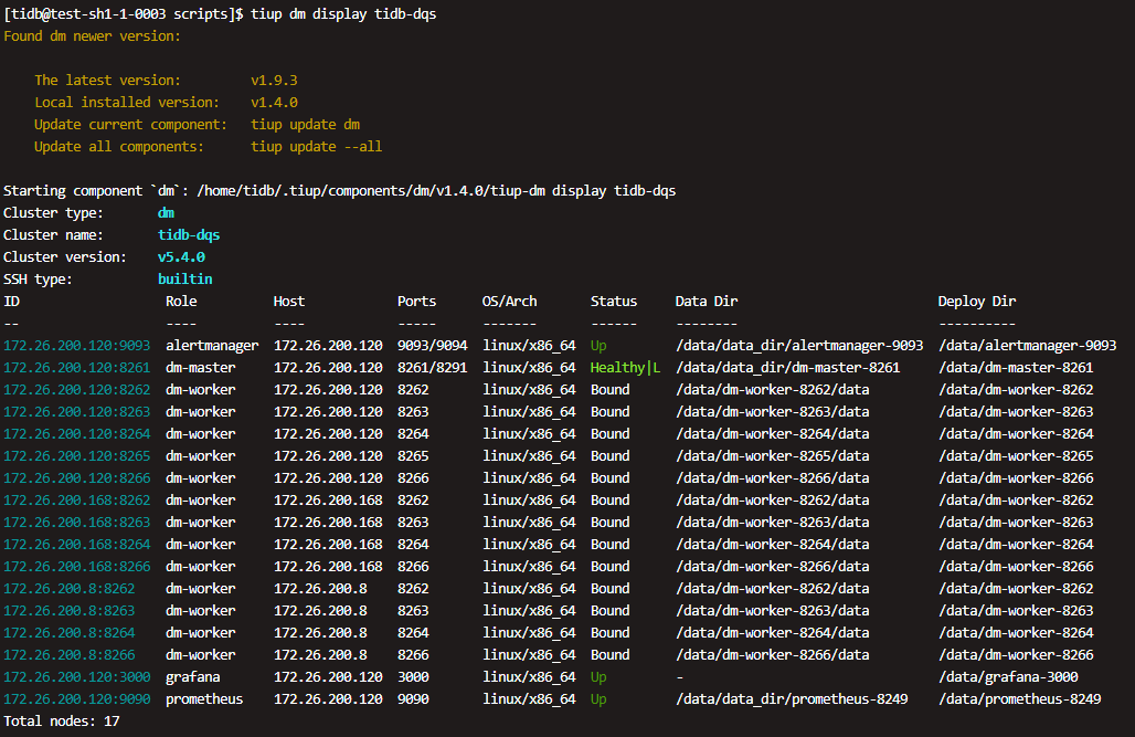 TiUP DM Display 信息