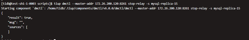 在确认数据源绑定关系后,执行stop-relay后出现的信息