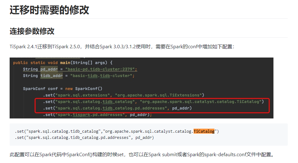 spark.sql.catalog.tidb_catalog org.apache.spark.sql.catalyst.catalog.TiCatalog