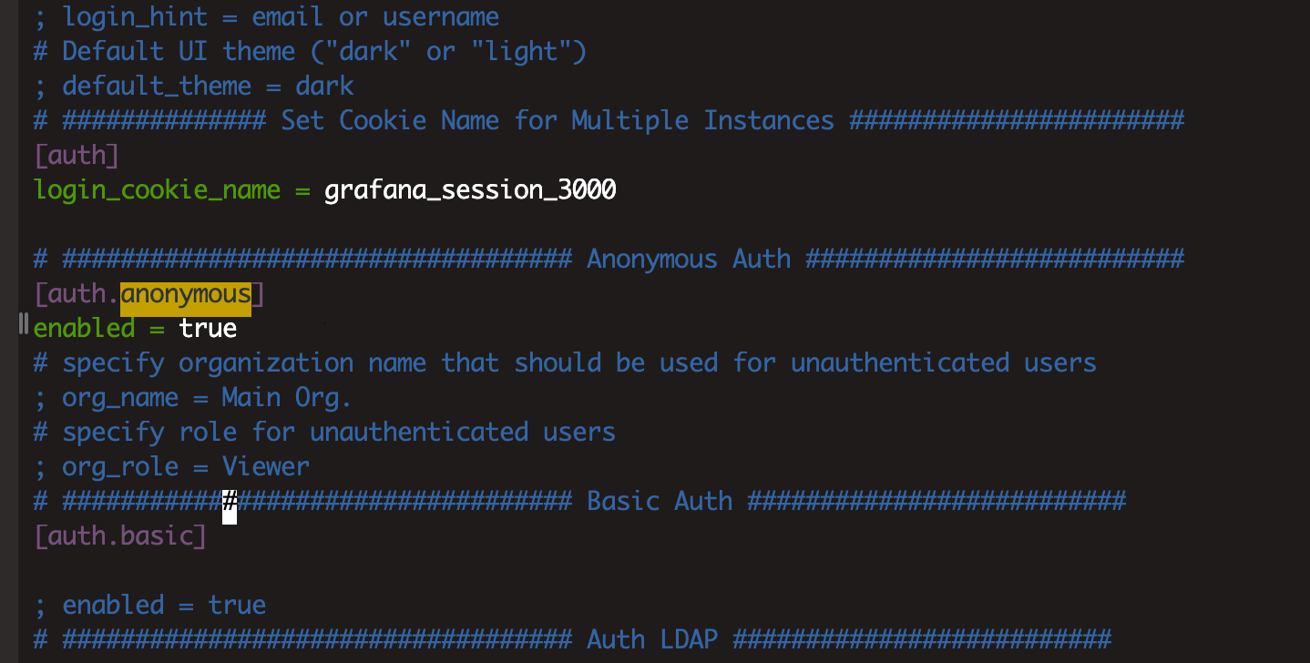 /{deploy-dir}/grafana-{port}/conf/grafana.ini文件,按如下所示修改两个配置项: