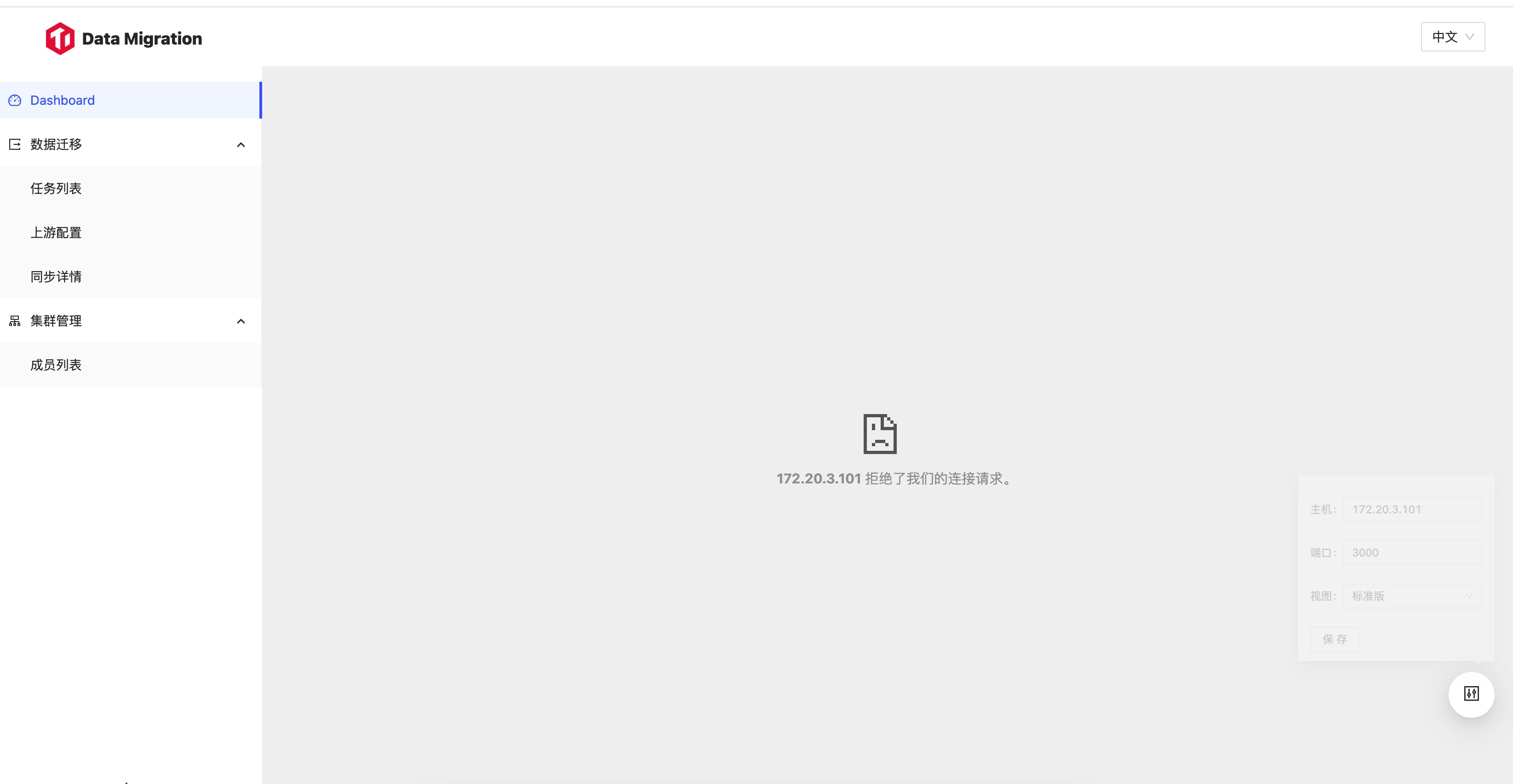 【遇到的问题】新建的dm6.0集群,webui的darshboard配置后提示拒绝连接